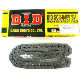 Une chaîne de distribution moto est la chaîne qui relie le moteur à son arbre à cames et aux soupapes d'admission. Elle offre une liaison permanente entre ces pièces essentielles et peut être faite de l'acier, du nickel ou du titane. Une chaîne de distribution fonctionne en mouvant un train d'engrenages, formant un maillon qui se serre autour d'un tendeur à ressort et soutient les vitesses à haut régime. Il existe différents types de chaînes de distribution pour motos, notamment les chaînes double et triple type O.