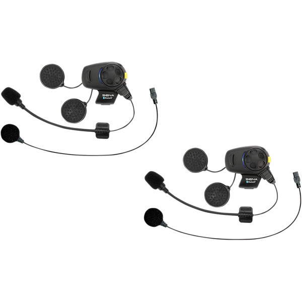 The SMH5 provides two-way intercom functionality that keeps you connected to your riding companion for conversations and music sharing through the crystal-clear Bluetooth® stereo headset, The SMH5-FM adds an integrated FM tuner, delivering crystal-clear FM radio reception, SMH5 intercom up to 400 meters / 430 yards, SMH5-FM intercom up to 700 meters / 760 yards, The Jog Dial and large button make for an intuitive user interface that lets you cycle through all device functions, Bluetooth 3.0 technology delivers GPS directions and provides the capability to listen to and share music when paired with a MP3 player or smartphone, Crystal-clear natural sound that gets an automatic boost in noisy environments, while Advanced Noise Control™ technology cuts down on background noise for both incoming and outgoing audio, The Bluetooth music playback control features play, pause, track forward, and track back functions, and each audio source has its own adjustable volume level, Even if your companions don't have Sena gear, these use the Universal Intercom™ protocol, which allows your gear to work with their gear, regardless of brand, You get up to seven hours of talk time and six days of stand-by on a single 2.5 hr charge