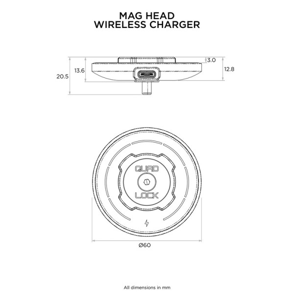 Veuillez noter :*La tête de recharge sans fil Quad Lock MAG™ nécessite l'utilisation d'une coque Quad Lock MAG™.