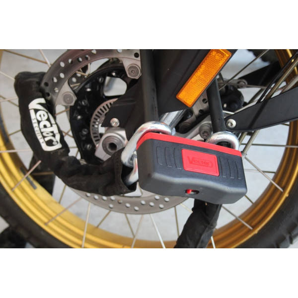 Acier cémenté Cache-poussière intégré Cylindre de serrure à disques multiples Fermeture automatique (par pression de la crosse de l’anse) Dimensions intérieures de l'anse : 146 x 184 mm