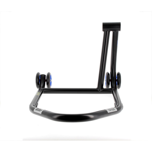 Les nouvelles béquilles d'atelier BIHR Home Track sont développées en partenariat avec Indespro, constructeur espagnol.  Corps de béquille en acier Ø 35mm4 roues Ø 110mmPeinture thermolaquée noir matSticker effet métallique  Broche à commander séparemment