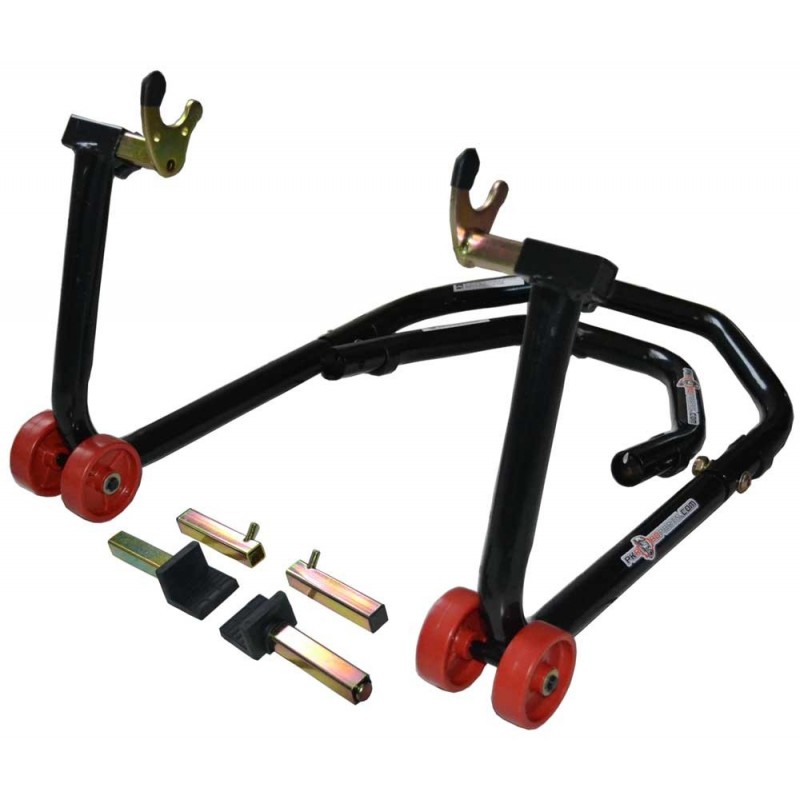 Pkroadparts vous présente le bon compromis en terme de béquille d'atelier moto avec la référence 3011P 2 en 1, une béquille arrière qui peut se convertir en un clin d'œil en béquille avant.
