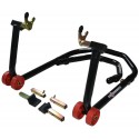 Il comprend une béquille arrière avec ses supports patins ou fourches pour les motos équipées de diabolos.