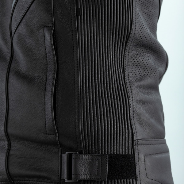 Une veste Airbag ultra résistante avec de multiples réglages d'ajustements.Fabriquée à partir d'un cuir de vachette de qualité supérieure teint au tambour, doux au toucher et à la finition mat, la veste intègre du tissu stretch quadri-directionnel avec des empiècements d'aisance étendus offrant un niveau de confort et de liberté de mouvement accru lorsqu'elle est portée, sans entraver le déploiement de l’airbag. En fait, les empiècements d’aisance font le tour des manches et procurent une souplesse inégalée, adaptée aux différents styles de pilotage.  À cela s’ajoutent la doublure thermique sans manches, matelassée et amovible, la doublure fixe en filet Quick Dry et la ventilation en cuir perforé pour vous garder au chaud tout en étant bien ventilé, ainsi que des réglages d'ajustement au niveau de la taille. La veste Sabre surpasse l'homologation CE de niveau AAA. En plus de cela, l’ensemble de protections CE Niveau 1, les protections  d’épaules en TPU ton sur ton, la technologie In&motion Airbag, les logos réfléchissants ainsi que les empiècements brodés offrent une visibilité supplémentaire et une protection sans compromis. Le zip de raccord 360° assure une liaison parfaite avec tous les pantalons RST, notamment avec le pantalon en cuir Sabre. Également disponible en version textile.Homologation CE Niveau AAA Protection Protection dorsale : Protection dorsale In&motion CE Niveau 1 Protection épaules : CE Niveau 1 Protection coudes : CE Niveau 1 Airbag : système In&motion Fabrication Matière principale externe : cuir de vachette teint au tambour de qualité supérieure Matière extensible : stretch quadridirectionnel avec empiècements d'aisance Doublure thermique : doublure thermique sans manches amovible Doublure intérieure : doublure fixe en filet Quick Dry Manchette : néoprène Col : néoprène Fermetures éclair MAX Fil : nylon collé Ventilations : cuir perforé Zip de raccord : oui - 360° Caractéristiques Réglage : ajusteurs - taille Poches extérieures : 2 Poches intérieures : 1 Détails réfléchissants : empiècements réfléchissants