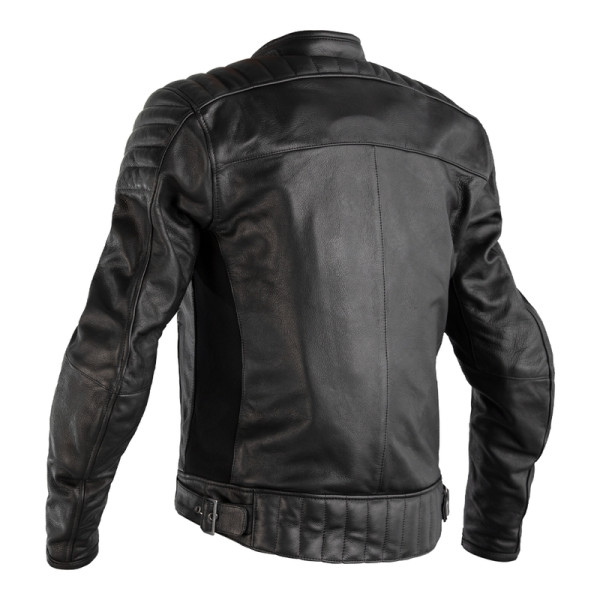 La veste Fusion a un look typiquement vintage, mais dispose des technologies de protection les plus récentes.  Cette veste classique est tout simplement bluffante à porter. Fabriquée à partir d’un cuir de vachette ciré à l'aniline, elle intègre un tissu stretch quadri-directionnel avec des empiècements d’aisance qui s'étendent du côté du corps jusqu’aux bras, offrant un confort accru sans entraver le déploiement de l’airbag. En outre, sa coupe ajustée et ses caractéristiques principales, telles que la doublure fixe en filet, les manchettes et le col en cuir roulé, les fermetures zippées de style vintage et les réglages d'ajustement au niveau de la taille, confèrent à la veste Fusion un design à la fois subtil et sobre. La sécurité du pilote a également été soignée grâce à un ensemble de protections CE Niveau 1 incluant une protection dorsale et un airbag de technologie In&Motion : c’est dans l'union du style et de la protection que la veste Fusion prend tout son sens. Protection Protection dorsale In&motion CE Niveau 1 Protection épaules CE Niveau 1 Protection coudes CE Niveau 1 Airbag : système In&motion Fabrication Matière principale externe : cuir de vachette ciré à l'aniline de qualité supérieure Matière extensible : stretch quadridirectionnel Doublure intérieure : Doublure fixe en filet 3D Quick Dry Manchette : cuir roulé Col : cuir roulé Fermetures éclair RST de qualité supérieure Fil : nylon collé Zip de raccord : non  Caractéristiques  Réglage : sangles de serrage à boucle frontale au niveau de la taille Poches extérieures : 3 Poches intérieures : 1
