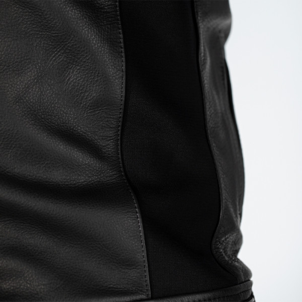 La veste Fusion a un look typiquement vintage, mais dispose des technologies de protection les plus récentes.  Cette veste classique est tout simplement bluffante à porter. Fabriquée à partir d’un cuir de vachette ciré à l'aniline, elle intègre un tissu stretch quadri-directionnel avec des empiècements d’aisance qui s'étendent du côté du corps jusqu’aux bras, offrant un confort accru sans entraver le déploiement de l’airbag. En outre, sa coupe ajustée et ses caractéristiques principales, telles que la doublure fixe en filet, les manchettes et le col en cuir roulé, les fermetures zippées de style vintage et les réglages d'ajustement au niveau de la taille, confèrent à la veste Fusion un design à la fois subtil et sobre. La sécurité du pilote a également été soignée grâce à un ensemble de protections CE Niveau 1 incluant une protection dorsale et un airbag de technologie In&Motion : c’est dans l'union du style et de la protection que la veste Fusion prend tout son sens. Protection Protection dorsale In&motion CE Niveau 1 Protection épaules CE Niveau 1 Protection coudes CE Niveau 1 Airbag : système In&motion Fabrication Matière principale externe : cuir de vachette ciré à l'aniline de qualité supérieure Matière extensible : stretch quadridirectionnel Doublure intérieure : Doublure fixe en filet 3D Quick Dry Manchette : cuir roulé Col : cuir roulé Fermetures éclair RST de qualité supérieure Fil : nylon collé Zip de raccord : non  Caractéristiques  Réglage : sangles de serrage à boucle frontale au niveau de la taille Poches extérieures : 3 Poches intérieures : 1