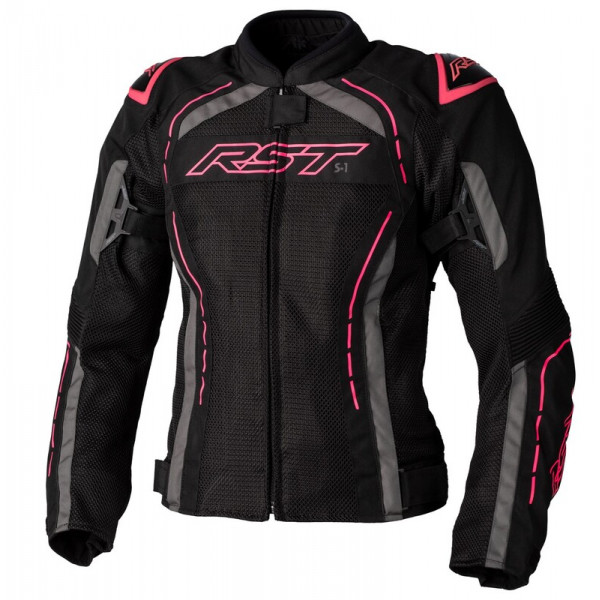 Veste femme RST S1 Mesh CE textile - noir/rose fluo taille L