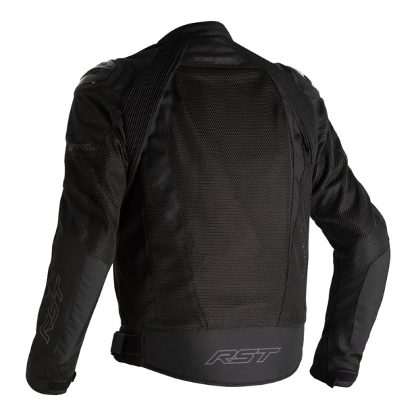 Une veste textile ultra ventilée.  Fabriquée en MaxTex résistant à l’abrasion, la veste comporte aussi une doublure en filet K540 dont le volume des poches d’aération a été quadruplé et qui est cousue pour permettre une circulation optimale de l'air. Elle intègre également du textile tissé extensible dans les 4 sens avec des empiècements d'aisance offrant un niveau de confort accru et une grande liberté de mouvement.  À cela s’ajoutent la membrane imperméable, respirante et amovible en SinAqua et la doublure fixe en filet pour vous garder au sec, avec des systèmes d'ajustement au niveau de la taille et des manches pour un réglage sur mesure.  La veste intègre une poche pour protection dorsale optionnelle et offre une protection homologuée CE Niveau 1 aux épaules et aux coudes ainsi que des empiècements réfléchissants pour encore plus de visibilité et de sécurité.  Le zip de raccord 360° assurera une liaison parfaite avec tous les pantalons RST. Également disponible en version cuir.Homologation CE, AProtection  Protection dorsale : poche uniquementProtection épaule : CE Niveau 1Protection coude : CE Niveau 1 Fabrication  Matière principale externe : MaxTexMatière secondaire externe : filet K540Matière extensible : empiècements d'aisance Doublure imperméable : membrane imperméable amovible en SinAquaDoublure intérieure : doublure fixe en filet Col : néoprène, type SportFermetures éclair MAXFil à âme polyester Zip de raccord : oui - 360° Caractéristiques Réglage : ajusteurs, pour taille et manchesPoches extérieures : 2Poches intérieures : 2Détails réfléchissants : oui - logos et empiècements réfléchissants