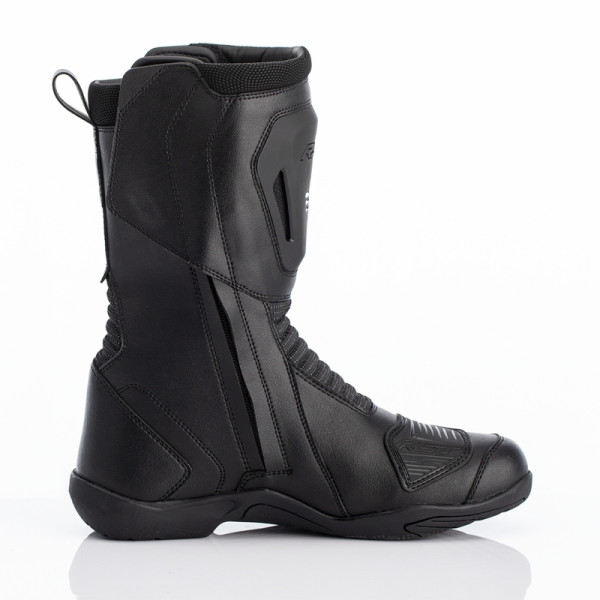 La botte Pathfinder est parfaite pour le touring. Conçue en microfibres résistante, la botte intègre une membrane SympaTex™ imperméable et respirante haute performance. Plus la membrane est chaude, plus elle est performante et comme elle n'est pas microporeuse, vous ne dépendez pas de la respirabilité du tissu extérieur pour réguler la température de la botte. Homologuée CE, la botte comporte une protection du tibia en TPU, alliée à une protection de malléole intégrée. Elle est équipée d'une protection de sélecteur de vitesse flottante identique à celle utilisée sur les bottes TracTech : la protection n’entoure pas la botte, d'où un plus grand confort lorsque vous êtes à moto.  Pour améliorer encore le niveau de confort, des empiècements d'aisance en textile réfléchissants sont placés à l'avant et à l'arrière de la botte. Toutefois, la caractéristique clé de cette botte est la manière dont elle peut être enfilée et retirée. Les fermetures zippées et les empiècements scratch double face s’ouvrent pour permettre à l'avant de la botte de pivoter lors du retrait. Cela laisse une grande ouverture qui abrite une membrane en SympaTex™ à l'intérieur de la botte. Des fermetures à scratchs extra-larges permettent plusieurs niveaux d'ajustement de la botte en fonction des différentes tailles de mollets. La semelle extérieure a été conçue spécialement pour le touring : elle comporte des empreintes profondes et résistantes parfaites pour le pilote, offrant une bonne adhérence aussi bien sur la moto qu’en balade.Homologation CE Protection  Protection du talon : coque renforcéeProtection du tibia : TPUProtection de la malléole : intégrée  Fabrication  Matière principale externe : microfibreDoublure intérieure : doublure en filetDoublure imperméable : membrane imperméable SympaTex™Fermeture : fixation zippée double avec fermeture tibia double faceProtection sélecteur de vitesse : TPUTige : semelle intercalaire anti-torsion en polycarbonateSemelle intérieure : gel antibactérienSemelle extérieure : semelle RST Touring ProVentilations : oui  Caractéristiques  Pointe de pied : intégrée et renforcéeEnfilage : type à sangle doubleDétails réfléchissants : oui - tissu réfléchissant