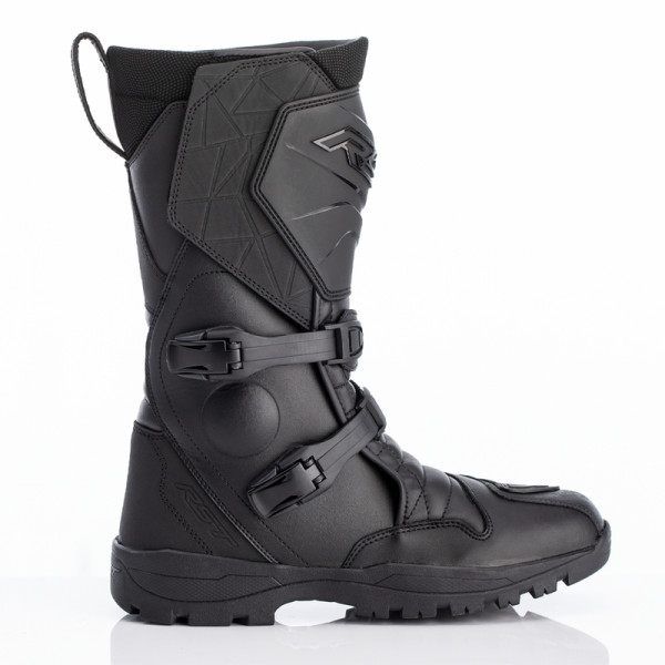 Cette botte a été repensée en reprenant les meilleures caractéristiques du modèle précedent pour développer une botte parfaite pour l'Adventure.  Grâce à son système de fermeture à double boucle, l'Adventure-X est facile à enfiler et à enlever, tout en restant bien ajusté grace à des fermetures supplémentaires à scratch. Ce système permet à la botte de s'adapter à différentes tailles de mollets pour un excellent maintien en toute sécurité. Une membrane respirante SinAqua Pro garde le pied sec et frais, que vous rouliez sous la pluie ou que vous marchiez dans la boue, avec une semelle de type chaussure de marche pour une meilleure adhérence en descendant de moto. Homologation CE Protection  Protection du talon : Coque renforcéeProtection du tibia : TPUProtection de la malléole : Intégrée  Fabrication  Matière principale externe : MicrofibreMatière secondaire : Microfibre SuèdeDoublure imperméable : Membrane imperméable en SinAquaFermeture : Double boucle avec scratchProtection sélecteur de vitesse : TPUTige : Semelle intercalaire anti-torsion en polycarbonateSemelle intérieure : Gel antibactérienSemelle extérieure : Semelle RST Adventure  Caractéristiques  Pointe de pied : Intégrée et renforcéeEnfilage : Type à sangle