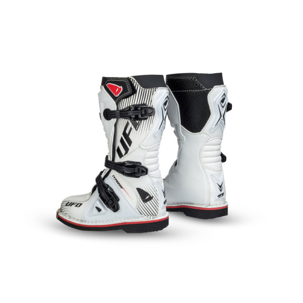 Décrouvrez les bottes off-road junior "Typhoon" fabriquées en cuir et TPU  Partie supérieure résistante aux coupures et à l'abrasionInserts en TPU dans la zone du tibia, de la cheville et de la zone de changement de vitesses pour une protection maximaleBout de la bottes en acierStraps de réglages 3 micromètresSangles inférieures avec grands spoilers de protectionCuir daim résistant à la chaleur et à l'abrasionIntérieur fabriqué en mesh 3D pour un confort maximum et une bonne absorption de la sueur