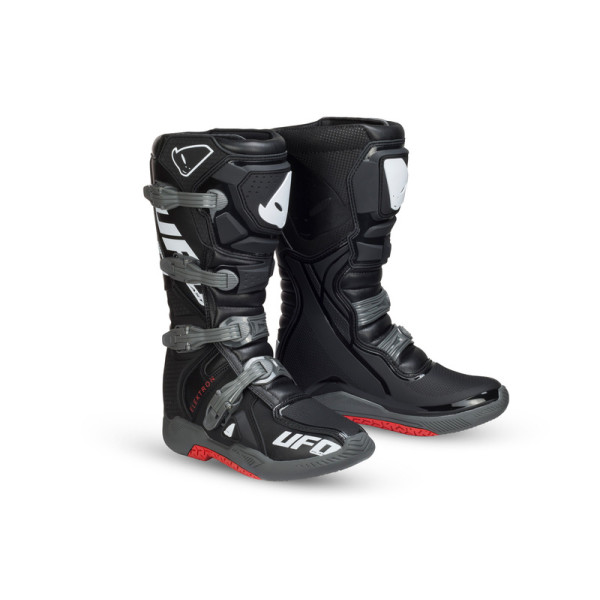 Bottes tout-terrain protectrices et légères avec semelle à coque en PU injecté et soudé Tige résistante aux coupures et à l'abrasion  Inserts en TPU au niveau du tibia, de la cheville et du changement de vitesse pour une protection maximale Fermeture à 4 boucles pour un réglage micrométrique Semelle en caoutchouc double densité hautement résistante à l'abrasion Intérieur en mesh 3D pour un meilleur confort et une meilleure absorption de la transpiration