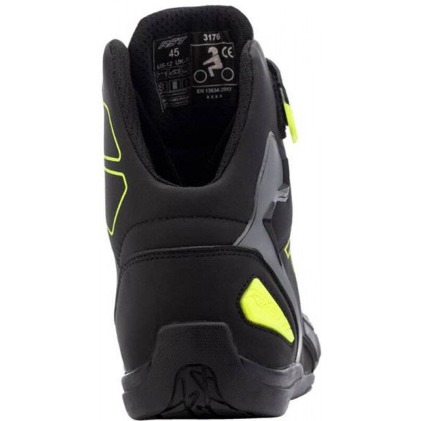 La Sabre incarne la performance ultime : une chaussure de karting au style super-agressif. Coupe basse à l’arrière, avec protection de la cheville et fermeture hybride à lacets et velcro. Le Sabre allie une excellente protection au grand confort sur la moto. Homologation CE : Homologué CEProtectionProtection du talon : TPUProtection de la cheville : TPUProtection du tibia : TPUFabricationRevêtement extérieur principal : MicrofibreAération : intérieur perforéFermeture : lacets avec rangementSélecteur de vitesse : oui, superpositionCambrion : semelle intermédiaire anti-torsion en polycarbonateSemelle : urbainCaractéristiques et avantagesCoquille : renforcéeProfilSport/Touring