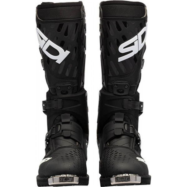 La Crossair HD est la première botte au monde conçue spécialement pour les disciplines de hard enduro et de super enduro. Elle offre toute la robustesse d’une botte haut de gamme Sidi, avec un poids de seulement 1700 grammes (taille 43), bien plus légère que toutes les autres. Un exosquelette interne renforcé en fibre de verre assure un soutien et une sécurité complets tout en maintenant une structure ultralégère. Sa semelle en caoutchouc est cousue directement à la tige, avec un design et un composé dérivés des bottes de trial. Cela permet à la botte d’être légère, protectrice et d’offrir une adhérence inégalée, que ce soit sur les repose-pieds ou sur tous les types de terrain rencontrés en hard enduro.