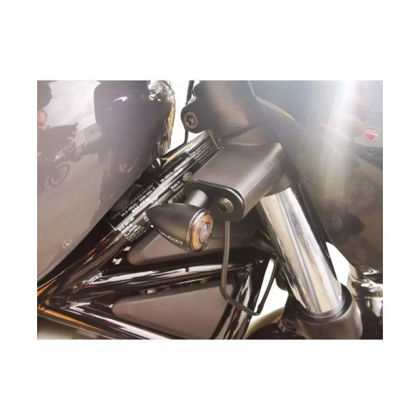 Les supports de clignotants pour Harley-Davidson sont usinés dans la masse. En acier d'épaisseur 2.millimètres, ils sont revêtus d'une peinture époxy noire mat. Le diamètre du trou est de 8,5 millimètres et vous permettra de mettre tous les styles de clignotants à tige.
