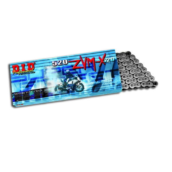 D.I.D est un fabricant japonais d’éléments de transmission haute performance, mondialement reconnu pour la qualité de ses chaînes. Très impliquée en compétition, la marque équipe également de nombreuses machines pour la première monte  Chaîne de type ZVM-X Composée de maillons X-RingDestinée aux motos de grosses cylindréesMise au point dans le but d’améliorer la résistance aux charges exercées Transfert de puissance vers la roue arrière très précis et sans pertes de puissance Rigidité plus importante par rapport à une chaine standard Référence en termes de fiabilité tout comme de longévité Attache à riveter