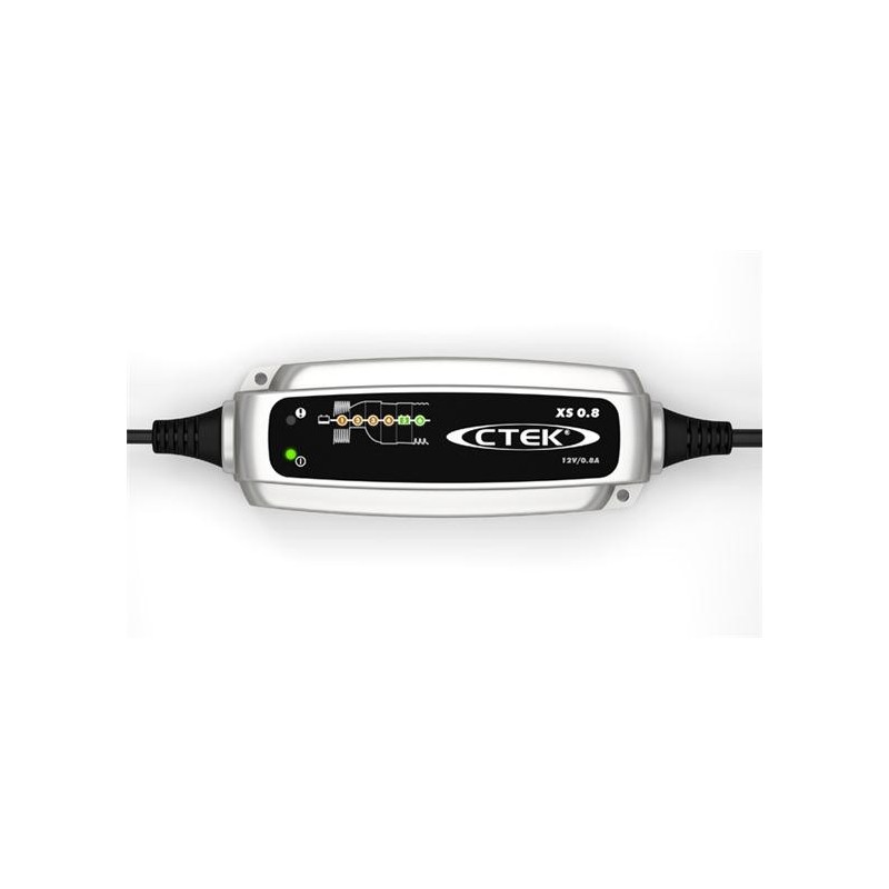 Le XS 0.8 est le plus petit chargeur 12V de CTEK. Il offre une technologie dernier cri et convient parfaitement à la charge des batteries 12V plus petites des motos, des scooters des mers, des petits véhicules tout-terrain et des tondeuses. Il permet également la charge d’entretien des batteries de « taille normale » comme celles des voitures. Son affichage unique permet à l’utilisateur de suivre tout le processus de charge. Le XS 0.8 est un chargeur compact et entièrement automatique à 6 étapes pour les batteries 12V de 1,2 à 32Ah, il permet également la charge d’entretien jusqu’à 100Ah. La classe du XS 0.8 est IP 65 (protégé contre les éclaboussures et la poussière), il produit 0.8A et sa conception protège l’électronique du véhicule. Il se produit pas d’étincelle, il est protégé contre l’inversion de polarité et les courts-circuits. Le XS 0.8 bénéficie d’une garantie de cinq ans.