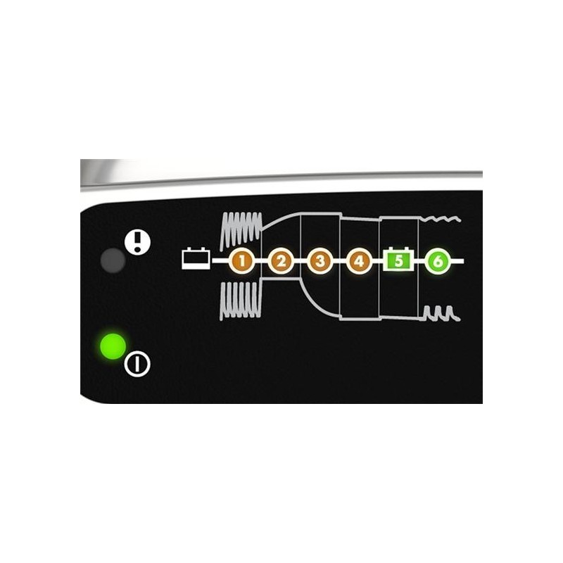 • La charge entièrement automatique et l'entretien en 6 étapes maximisent la longévité et les performances de la batterie.