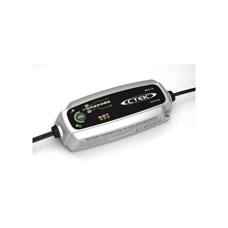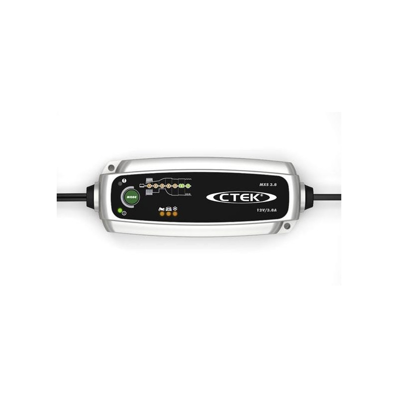 Le MXS 3.8 est un chargeur 12 V "brancher et oublier" entièrement automatique à 7 étapes de charge qui offre une sélection de programes 0,8 A et 3,8 A. Le mode flocon de neige fonctionne sur le programe 3,8 A. Large plage de charge sur tous les types de batteries acide-plomb de 1,2 Ah à 80 Ah avec une capacité d'entretien supplémentaire de 130 Ah. Protégé des projections et de la poussière (IP65). Le MXS 3.8 est d'un emploi facile et sûr, il protège l'électronique du véhicule, ne produit pas d'étincelle, est protégé contre l'inversion de polarité et les courts-circuits. Le MXS 3.8 bénéficie d'une garantie de 5 ans.