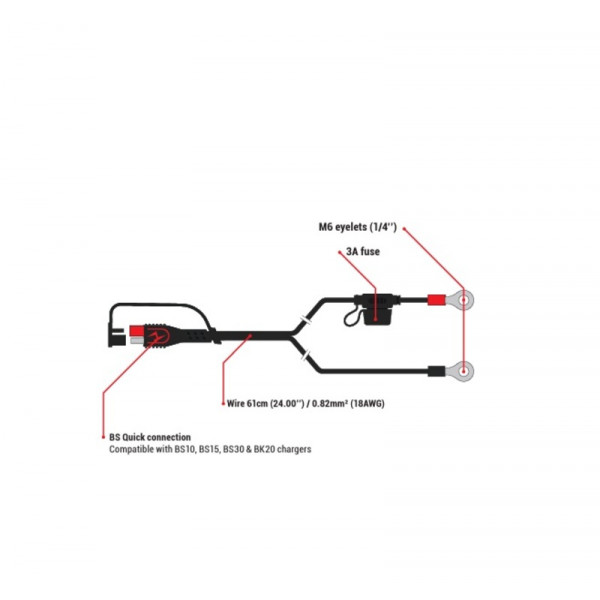 1. Connecter l'oeillet rouge à la borne positive de la batterie (+)