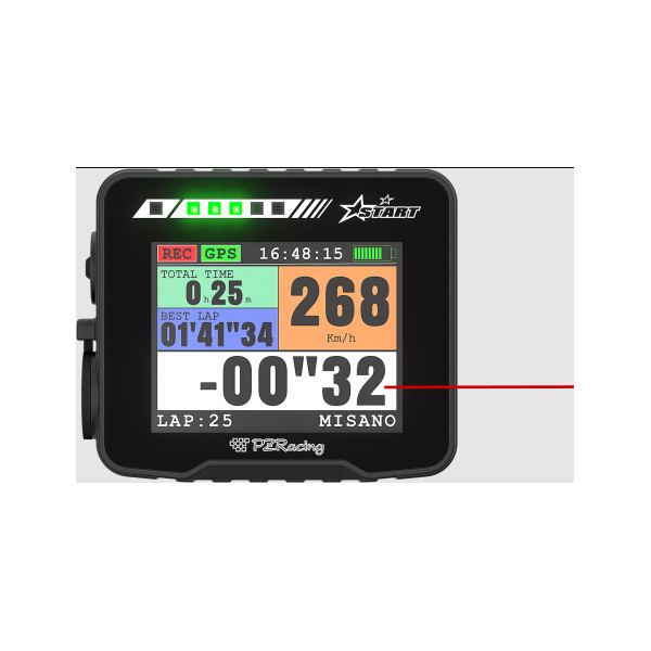 Chronométrage précis, affichage instantané des temps au tour, 3 temps intermédiaires, LED d’amélioration, calcul du temps idéal et affichage prédictif à partir du 3e tour. Un must pour tout pilote souhaitant progresser sereinement.