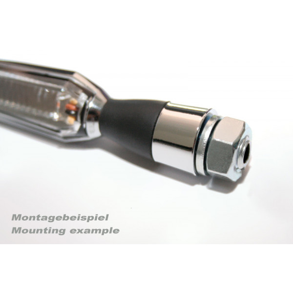 HIGHSIDER Douille d'écartement conique Manchon d'écartement en aluminium pour presque tous les indicateurs avec un boulon fileté M8 de HIGHSIDER. Une fente dans le manchon facilite le passage des câbles. Peut être utilisé comme rallonge de clignotants ou comme entretoise si le boulon fileté du porte-lampe touche l'intérieur du boîtier de la lampe lors de sa fixation sur le porte-lampe. La vaste gamme d'accessoires du HIGHSIDER est parfaitement adaptée à votre vélo. Avec un maximum de qualité et de fonctionnalité, vous pouvez facilement concevoir votre vélo selon vos souhaits. Dimensions: Diamètre (conique) : De 15,5 à 14 mm Longueur : 10 mmperçage : 8 mm Vendue : 1 paire