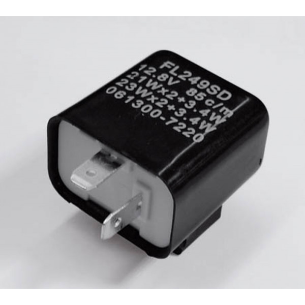 Relais clignotant intelligent HIGHSIDER, 2 pôles, 12 Volts 21 Watt x2 + 3.4 Watt, relais en plastique noir.