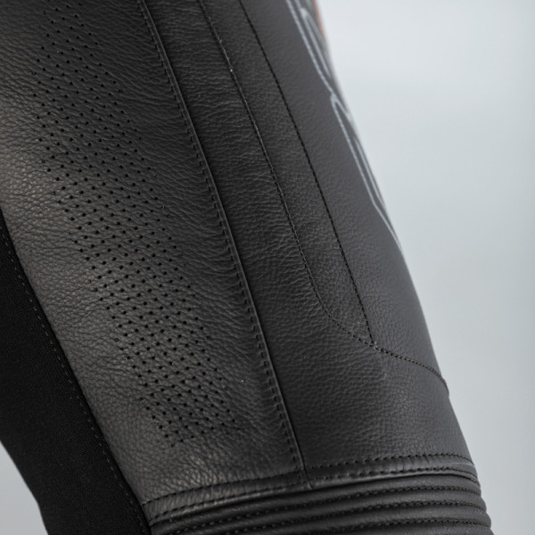 La combinaison moto ultime. Avec un design moins radical que la V4.1, la combinaison Pro Series Airbag, entièrement homologuée CE de niveau AAA, est le meilleur choix pour la piste. Fabriquée à partir de cuir de vachette de qualité supérieure extra souple, la combinaison intègre du tissu stretch quadri-directionnel sans couture avec des empiècements d’aisance qui s'étendent du côté du corps jusqu’aux bras et au niveau du torse, des genoux, des coudes, de l'arrière du dos, de l'intérieur du mollet et de la cuisse. Cela favorise ainsi l'ajustement longitudinal, offre un niveau supérieur de confort, plus de liberté de mouvement, et aide au déploiement de l'airbag. L'assise, faite de deux couches de cuir, comprend une protection de coccyx cousue. L’empiècement intérieur du genou intègre du Dupont™ Kevlar® afin de favoriser l'adhérence sur le réservoir de carburant en cas de freinage brusque. En outre, la doublure fixe en filet 3D Quick Dry absorbe efficacement la transpiration, sèche rapidement et vous maintient au frais, notamment grâce aux panneaux ventilés sur le torse, le côté du corps, l'intérieur des cuisses et le dos. Elle comprend également une doublure plus légère et une doublure airbag améliorée qui vous permettent d’enfiler et d’enlever la combinaison aisément, et d’accéder facilement à la cartouche de gaz et au système In&box.   La bosse aérodynamique a été conçue pour s’ajuster aux spoilers des casques et améliore l'aérodynamisme en position de recherche de vitesse. Ajoutez à cela des équipements de sécurité de premier ordre tels que les protections homologués CE, les protections d’épaules et de genoux en TPU, les sliders de coudes et de genoux amovibles, et bien sûr la technologie In&motion Airbag intégrée, et vous obtenez une des meilleures combinaisons moto.Homologation CE Niveau AAA Protection Protection dorsale In&motion CE Niveau 1 Protection épaule CE Niveau 2 Protection coude CE Niveau 2 Protection genou longue CE Niveau 1 Protection hanche CE Niveau 2 Épaulière (coque) : TPU Genouillère (coque) : TPU Airbag : système In&motion Fabrication Matière principale externe : cuir de vachette teint au tambour de qualité supérieure Matière extensible : stretch quadridirectionnel avec empiècements d'aisance étendus Doublure intérieure : doublure fixe en filet 3D Quick Dry Manchette : néoprène, type racing Col : néoprène, type racing Fermetures éclair MAX Fil : nylon collé Ventilation : cuir perforé Renforcement : double couche de cuir sur les zones d'impact Caractéristiques Bosse racing aérodynamique Sliders coudes à scratch amovibles Sliders genoux à scratch, décrochage rapide Maintien de genou en aramide caoutchouté