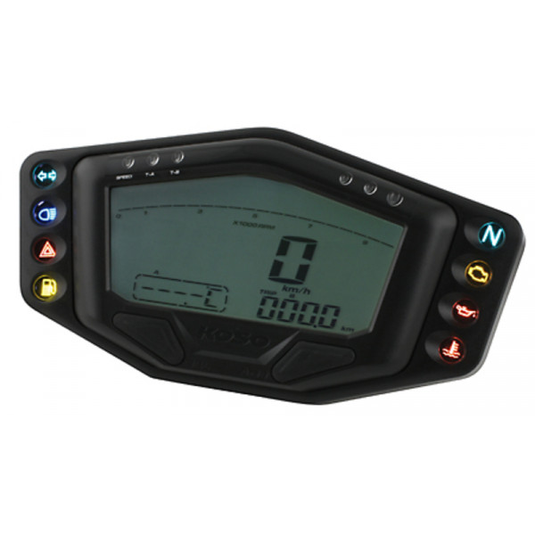 Les accessoires électriques Koso sont une garantie de fiabilité, de par leur qualité de fabrication et l’utilisation de composants de premier choix. Ils sont aussi bien destinés au remplacement de la monte d’origine qu’à la préparation de la moto. Cadre de compteur avec voyants Pour compteurs type DB02 et DB02R