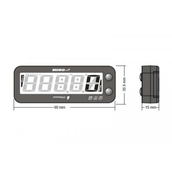 Compte-tours KOSO Pro-1 LCD multifonctions noir
