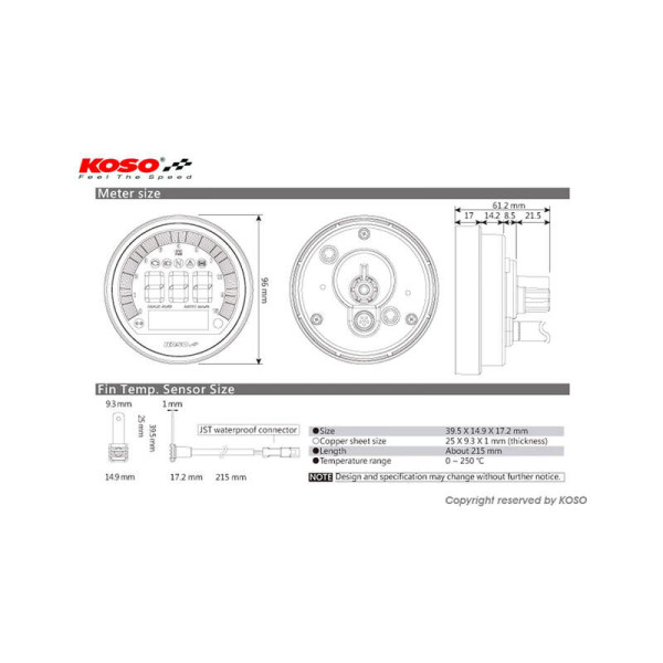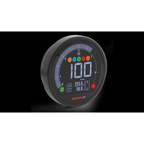 Compteur multi-fonctions Koso DL-04 noir pour BMW® R nineT® 2014-2016. Celui-ci dispose d’un affiche clair et simple de l’ensemble de votre machine. Par sa petite taille, il peut être facilement intégré dans le tableau de bord. Il annonce: Les kilomètres par heure : 0-360 km/h Les kilomètres parcourus, jusqu'à 99 999,9km Les kilomètres journaliers, jusqu'à 999,9km Les tours par minute, jusqu'à 15 000tr/min Niveau d'essence Heure Voltmètre de DC 5V à DC 28V Voyants : Clignotants, huile, feu, point mort et défaut moteur Dimensions: 96x61,2mm