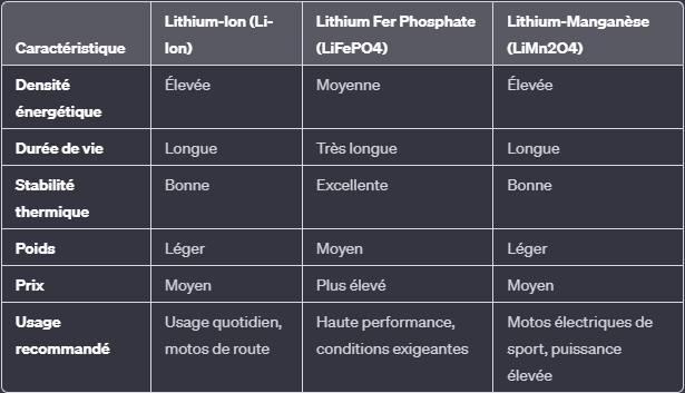 Comparaison des Types de batteries lithium moto