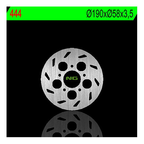 NG ® est une société spécialisée dans la fabrication de disques de frein de grande série pour la première monte.  Acier de haute qualité Grande durée de vieÉpaisseur : 3,5mmNombre de trous : 5Ø vis : 6,5mmØ intérieur : 58mmØ extérieur : 190mm