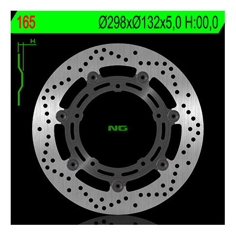 NG ® est une société spécialisée dans la fabrication de disques de frein de grande série pour la première monte.  Acier de haute qualité Grande durée de vieÉpaisseur : 5mmNombre de trous : 5Ø vis : 8,5mmØ intérieur : 132mmØ extérieur : 298mm