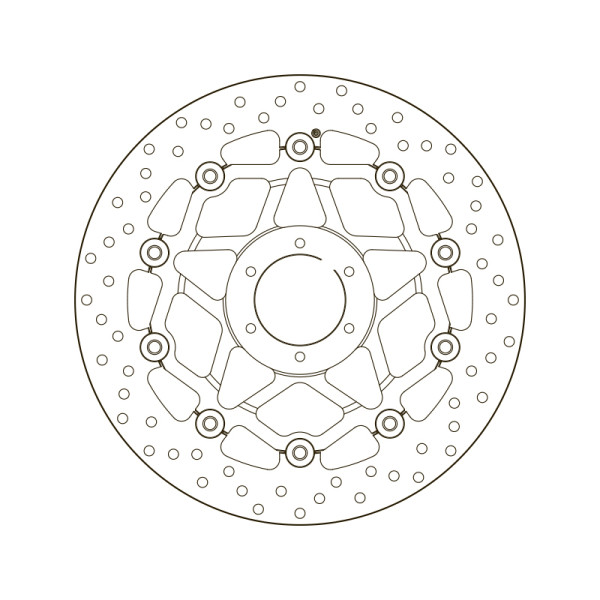 Les disques de frein Brembo Serie ORO sont une référence mondiale et sont un choix privilégié pour un remplacement de qualité supérieure. La bande circulaire en inox assure un freinage puissant en toutes conditions.  Disque de frein flottantPiste de freinage en acier inox10 douilles de connexion à le frette réalisées en alliage d’aluminium, usinée sur une machine à CNC et ensuite anodiséePour un remplacement équivalent à la première monte Garantie de qualité et de longévité Disque de frein efficace en toutes conditions : chaleur, froid, pluie, etc.
