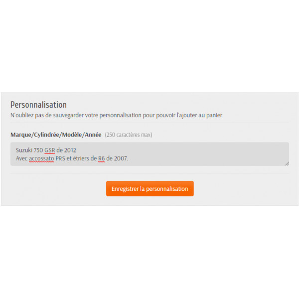 N'oubliez pas de sauvegarder votre moto pour pouvoir l'ajouter au panier