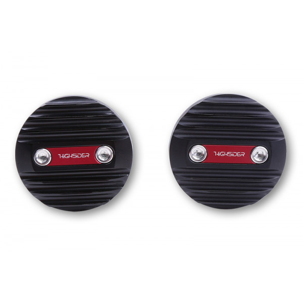 Poids de guidon HIGHSIDER WAVEEquipement universel pour les guidons dont le diamètre intérieur est compris entre 12 et 22 mm - donc pour la plupart des guidons en aluminium ou en acier de 7/8 de pouce et de 1 pouce. Tous les rétroviseurs de guidon suspendus de HIGHSIDER et SHIN YO avec pince externe peuvent être fixés aux poids du guidon.Des accessoires sur mesure pour votre moto - la vaste gamme d'accessoires de HIGHSIDER est parfaitement adaptée à votre moto. Avec un maximum de qualité et de fonctionnalité, vous pouvez facilement concevoir votre vélo selon vos souhaits. Dimensions:Poids du guidon : Ø 34,5 mm Largeur : 18 mmMonture du rétroviseur : Ø = 29,80 mmMonture du rétroviseur : Largeur = 12 mm Veuillez vérifier les dimensions avant d'acheter !Etendue de la livraison : 1 paire, contient:Chacun 2 x poids de guidonChacun 2 x douille de serrage Ø 12 et 16 mmChacun 2 douilles d'écartement avec Ø 14 , 18 et 21 mm2 x vis centrale M62 x écrou à cône M6Note :Le poids du guidon peut également être utilisé sans utiliser de rétroviseur de bout de guidon et peut être adapté à l'aspect de votre vélo par l'un des 4 anneaux de couleur différente.