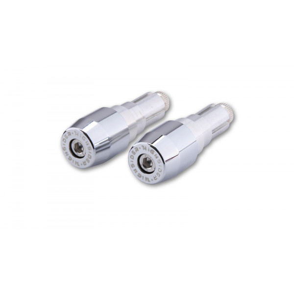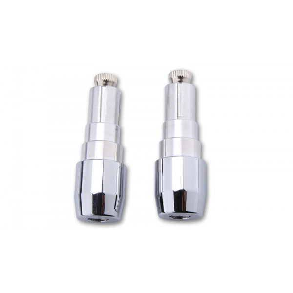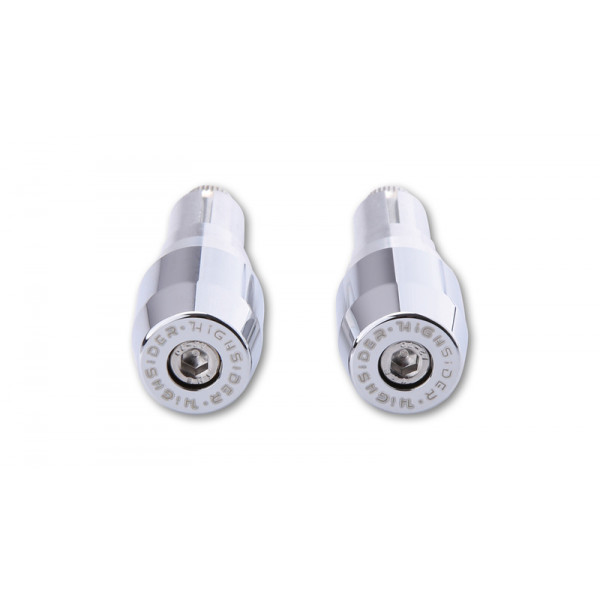 Extrémités de guidon HIGHSIDER EVO, chromées ou noires. Extrémités de guidon chromées ou noires, adaptées aux guidons d'un diamètre intérieur de 12 à 22 mm - c'est-à-dire pour la plupart des guidons 7/8" et 1" en aluminium ou acier. Tous nos rétroviseurs d'extrémité de guidon (rétroviseurs suspendus) d'un diamètre de 1 pouce (25,4 mm) peuvent être fixés au poids du guidon. Sur mesure pour votre vélo, les nombreux accessoires HIGHSIDER sont parfaitement adaptés à votre moto. Avec un maximum de qualité et de fonctionnalité, vous pouvez facilement concevoir votre vélo selon vos souhaits. Veuillez vérifier les mesures pour la précision de l'ajustement avant l'achat ! Mesures : diamètre : 25,4 mm longueur : 28 mm