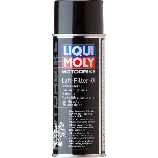 Aérosol spécialement développé pour imprégner les filtres à air en mousse ou texturés, Piège la poussière et la saleté de façon sûre même dans des conditions d‘utilisation extrêmes, ce qui évite l‘endommagement du moteur, Garantit un flux d‘air optimal et, par conséquent, une puissance maximale du moteur, Convient à toutes les motos à 2 et à 4 temps équipées de moteurs refroidis par air ou par eau et dotés de filtres à air en mousse ou en tissu
