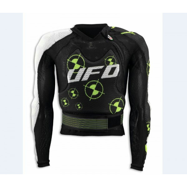Le gilet de protection UFO ENIGMA est une référence en termes de légèreté et de praticité à l’utilisation. Fabriqué à partir d’une matière micro-aéré, il est équipé de nouvelles protections hybrid SAS TEC/KOROYD Gilet intégral en polyester micro-aéréTechnologie Airnet : aération des zones à forte concentration thermiqueProtection SAS TEC/KOROYD démontable pour le lavageProtection multiples : épaules – coudes – buste - dosUne protection maximale avec un poids réduitCeinture abdominale pour un meilleur maintienFabriqué en Italie Homologations : Gilet complet : CE et Respecte le standard exigé par la FMIProtection avant : CE-EN14021Dorsale : CE-EN1621-2 Niveau 2Epaules et coudes : CE-EN1621-1