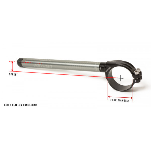 Guidon bracelets Gen3 Caractéristiques :  Diamètre de fourche : 50mmLongeur du tube : 210mm Inclinaison 7°  Tube de rechange : 870772