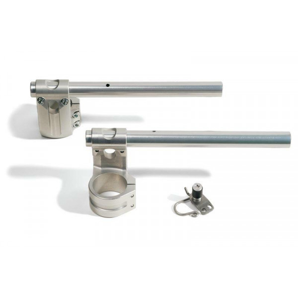 Les bracelets relevés rehaussent les guidons au-dessus du té de fourche. Proposant un compromis à tous ceux qui souhaitent conserver le look Racing de leur machine tout en gardant un confort de pilotage.  Extrêmement légers, taillés dans un bloc d’aluminium de très haute qualitéRehausse : 20mmAvancement vers le pilote : 40mmAngle d'inclinaison : 2°Le kit comprend : La paire de braceletsLes tubesToutes les pièces nécessaires à la transformation