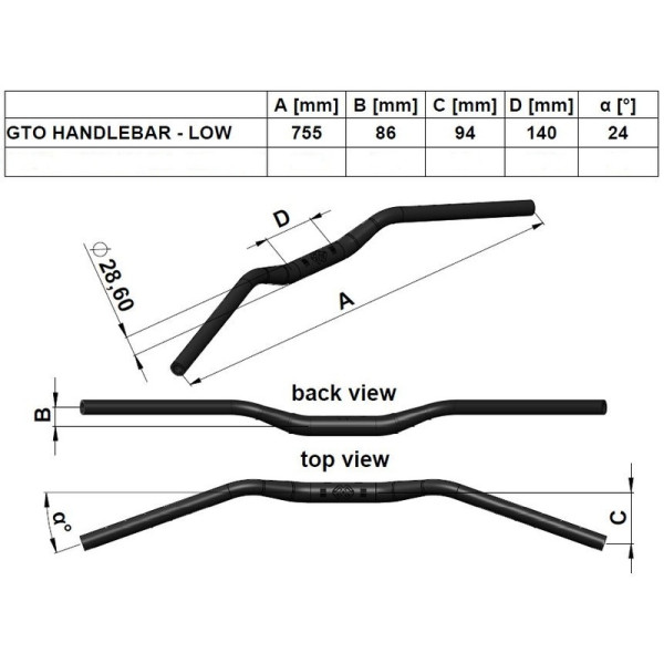 Guidon GILLES TOOLING Ø28,6mm GT Oversize sans barre noir
