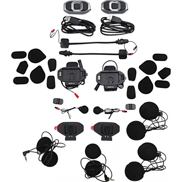 Le SENA SF4 a été pensé pour les motards souhaitant rester connectés sans s’encombrer. Ce kit double vous permet de dialoguer jusqu’à 4 motards simultanément, avec une portée de 1,29 km en terrain dégagé (0,8 mile en norme US).