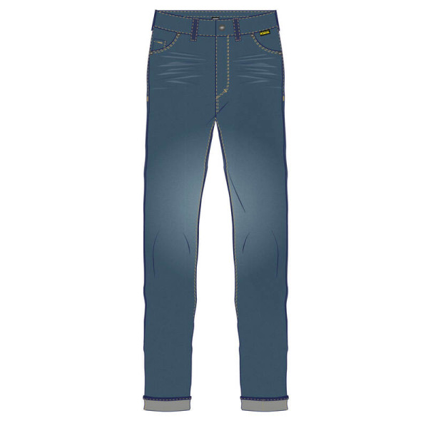 Ce jean 5 poches fabriqué avec du Kevlar™ comporte une poche à monnaie, une fermeture éclair et un effet used sur les cuisses. En outre, la coupe tapered (fuseau) de la jambe offre un ajustement près du corps. Taillé dans du denim stretch, le pantalon est doublé en fibre DuPont™ Kevlar® dans les zones d’impact principales telles que l'extérieur des jambes, l’entrecuisse et les genoux. Homologué CE de Niveau AA, il offre une protection supplémentaire CE Niveau 1 genoux et une poche pour la protection hanches. L’intérieur du pantalon intègre le nouveau système de protection RST Infinite Adjustment Armour System, développé pour améliorer l'ajustement des protections de genoux en fonctions des différentes tailles de jambes.Les protections CE de Niveau 1 se glissent dans des pochettes en coton et sont ensuite solidement fixées dans les poches de protections genoux par des scratchs. Les protections précisément ajustées améliorent le confort et la protection du pilote. Des repères gradués sont imprimés à l’intérieur du jean pour un réglage simple et précis. Disponible dans de multiples coloris et longueurs de jambe.Homologation CE, AProtection Protection genou : CE Niveau 1Protection hanche : Poche uniquement Fabrication Matière principale externe : Denim et fibre DuPont™ Kevlar® Doublure intérieure : Doublure fixe en filet / cotonRenforcement : Fibre DuPont™ Kevlar®Fermetures zippées : Fermetures éclair RST Caractéristiques Poches extérieures : 5Système de protection réglable à l’infini : OuiPatch arrière orné de la marque RST : OuiPassants de ceinture : OuiDétail couture contrasté : Oui