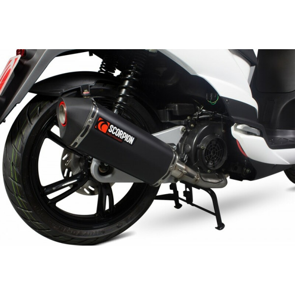 Si vous souhaitez obtenir le meilleur de votre scooter, les lignes d’échappements Scorpion sont la solution ultime. Lorsque la ligne complète est remplacée il n’y a pas de compromis sur la performance, et ce grâce au design unique optimisant le débit des gaz d’échappement.  Silencieux Serket droitTube de raccord inox Fabrication multi-composites Profil conique à 6 faces Donne une apparence racing à votre moto Allie esthétique et performance Montage à double ressort