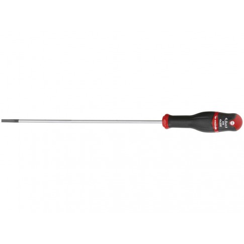 Tournevis Protwist® pour vis à fente.  Lame cylindrique permettant l'accès dans les puitsLame en acier carbone silicium : robustesse et résistance à la flexionLame extra-longue jusqu'à 300 mm pour accès difficiles et éloignésFinition lame chromée satinée, empreinte traitée noireManche ergonomique bi-matière résistant aux chocs, à l'abrasion et aux produits chimiques