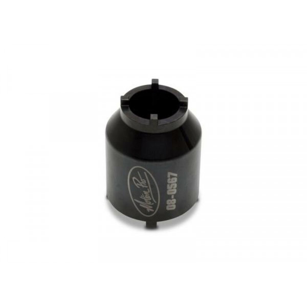 Douille à créneaux pour le serrage/desserrage des écrous à créneaux moteur ou partie-cycle. Cette douille comporte 2 côtés.  Nombre de créneaux : 4Côté n°1 : Ø int. 36,6 mm/Øext. 50 mmCôté n°2 : Ø int. 25,6 mm/Øext. 33,8 mmCarré conducteur : 1/2"Equivalent à l'outil Suzuki réf. 09940-14970