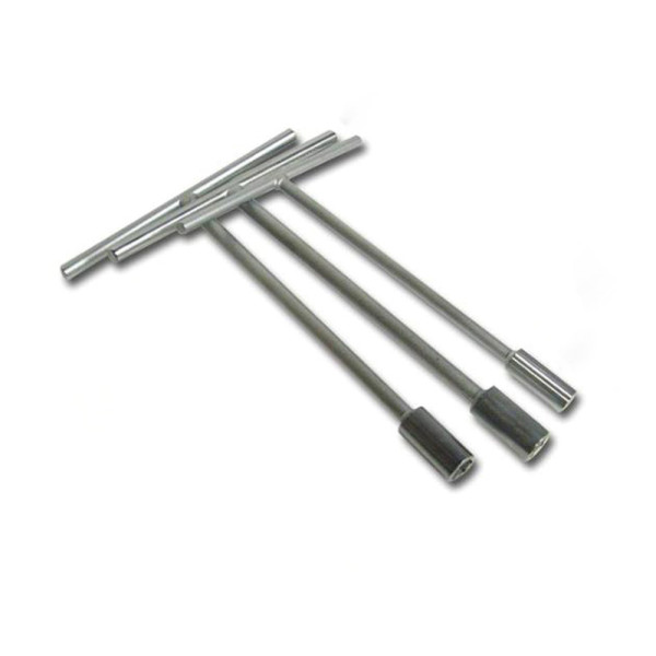 Jeu de clés à douilles en T : Finition chromée satinée Contenu jeu de 3 clés: 8 - 10 - 12mm