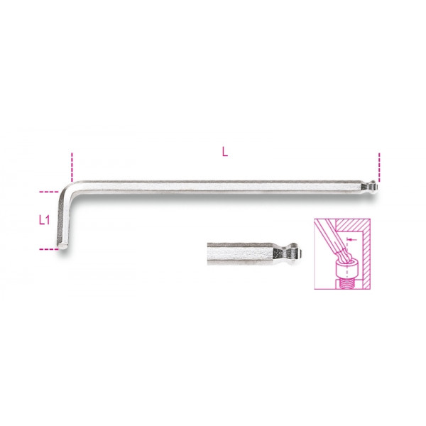 Jeu de 9 clés mâles 6 pans coudées à tête sphérique BETA modèle extra long